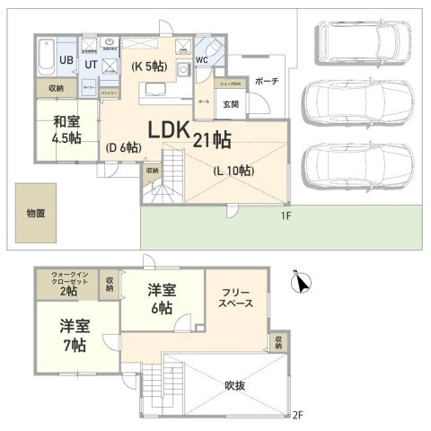 LDK 21.0帖 / 洋室 7.0帖 / 洋室 6.0帖 / 和室 4.5帖 / S(納戸) 6.0帖 / |