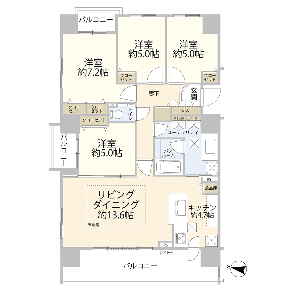 LDK 18.3帖 1室 / 洋室 7.2帖 1室 / 洋室 5.0帖 3室 / |