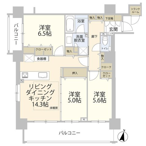 洋室 5.0帖 / 洋室 6.5帖 / 洋室 5.6帖 / |